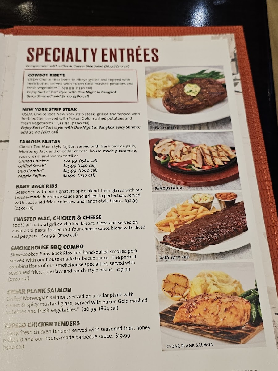 “ The food was great. We actually went there twice for dinner on our vacation. The rib was tender and falling off the bone. My kids ordered the salmon on both occasions. Great atmosphere, but expect to wait as this location was busy. It's best to reserve your seat before going there. ”