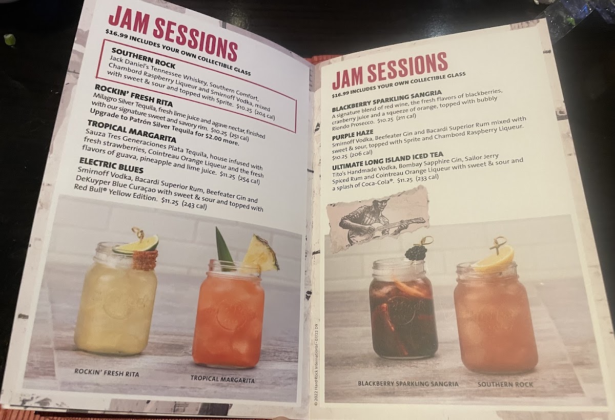 Complement your meal with standout signature cocktails, including the classic Hurricane—a refreshing blend of Bacardi rum and fruity juices, or the invigorating Rockin’ Fresh Rita, bursting with fresh lime and tequila.